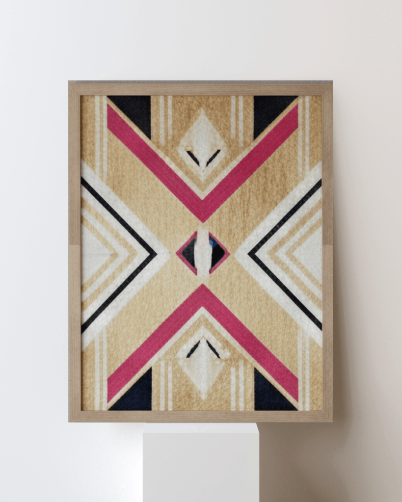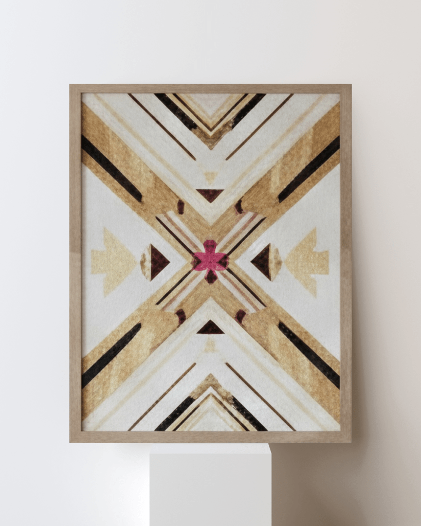 - Radiating Geometry: The use of elongated “X” forms creates a sense of outward expansion, yet the viewer’s eye is continually brought back to the soft magenta center. This creates a rhythmic “breath” within the piece, balancing movement with total stillness.