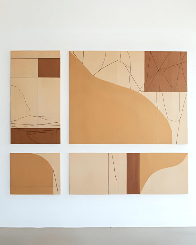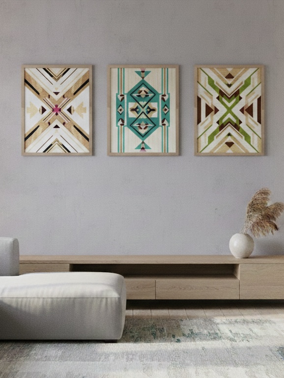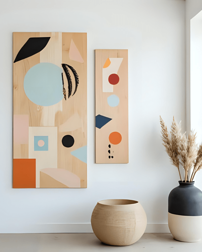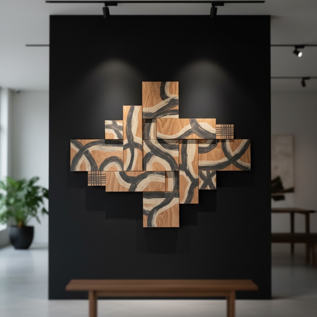 Before the modular panels came to life, I spent months exploring plywood as a painting surface testing how colour, texture, grain, and geometry respond to the material. These early works became a turning point in my practice, revealing how something simple and often overlooked could hold warmth, depth, and emotion.